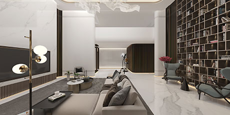 柔然舒適的布藝與地毯呼應,營(yíng)造輕松愉悅的氛圍;立面書(shū)架增添一份書(shū)香靜默的愜意閑暇;藝術(shù)造型的水晶吊燈,就像是空間流動(dòng)的音符,奏出靈動(dòng)的韻律??v使外界喧囂襲來(lái),屋內依然保持從容生活態(tài)度,符合業(yè)主對現代元素與輕奢感的追求。