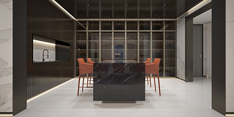 時(shí)間沉淀藝術(shù)的品質(zhì),經(jīng)典元素與多元文化融合其中,串聯(lián)并營(yíng)造出空間語(yǔ)言中的深境。茶色玻璃、黑色大理石、木質(zhì)格柵、設計感的橘色皮椅自有一種古典、高雅的氣韻彌漫,巧妙展現當代生活方式奢、簡(jiǎn)、靜三者的微妙關(guān)系。
